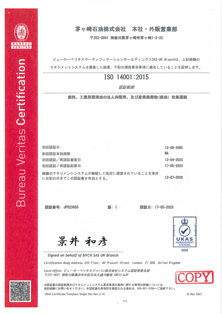 環境への取り組み ISO14001認証